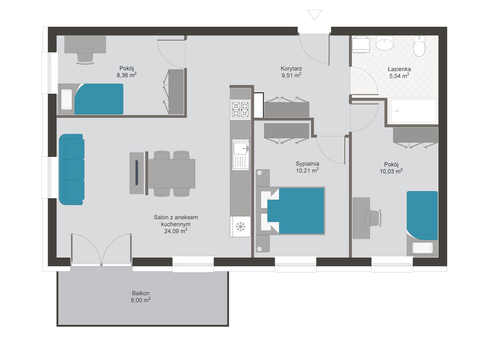 Piękne, komfortowe mieszkanie usytuowane na pierwszym piętrze kameralnego, dwupiętrowego budynku. Zachodnia ekspozycja zapewnia przyjemne, naturalne światło i ciepłą atmosferę wnętrz. Przestronny salon, duża sypialnia oraz dwa pokoje tworzą wygodną, harmonijną przestrzeń do życia i wypoczynku.