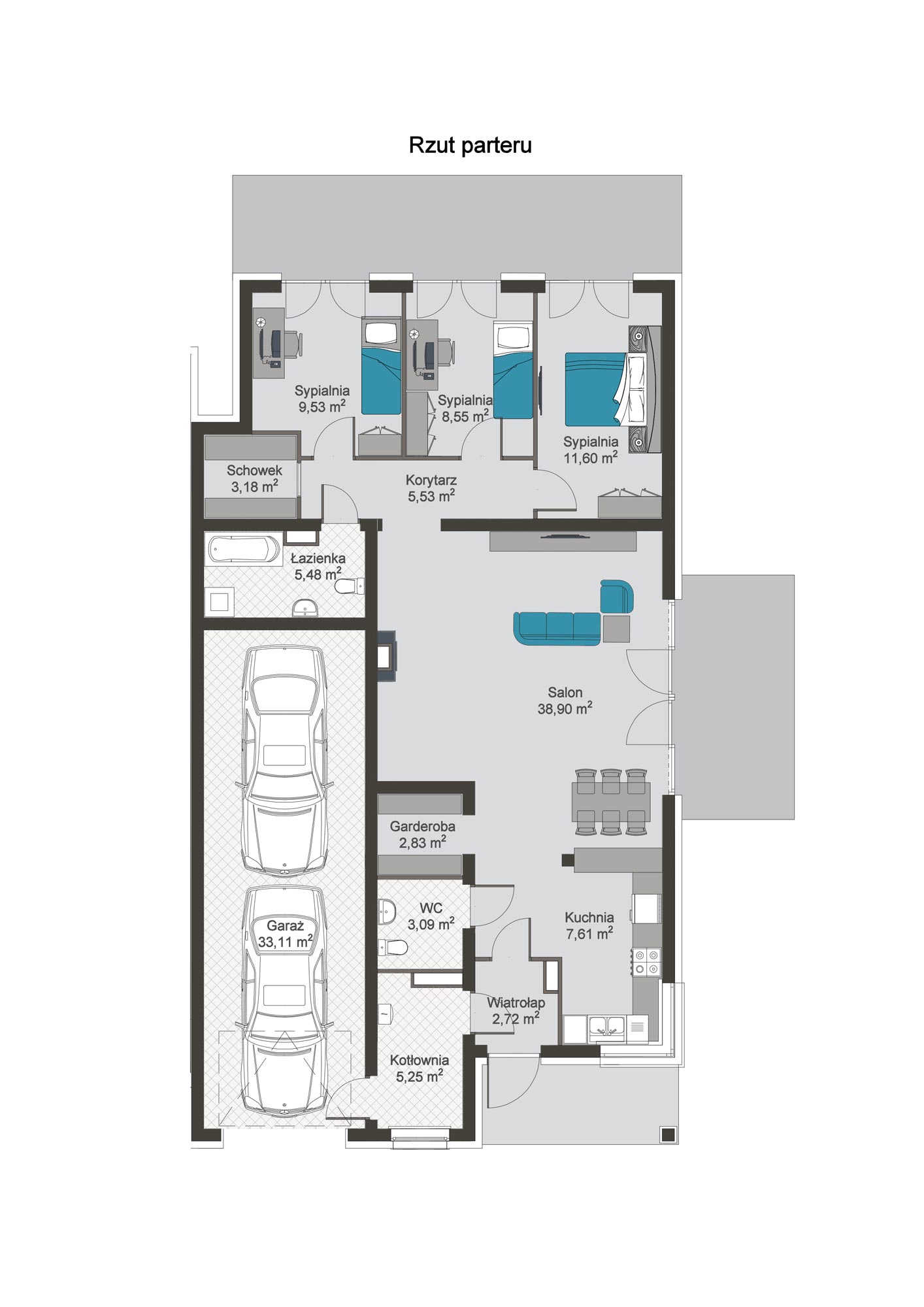 budynek jednorodzinny parterowy w zabudowie bliźniaczej (dwa segmenty)
