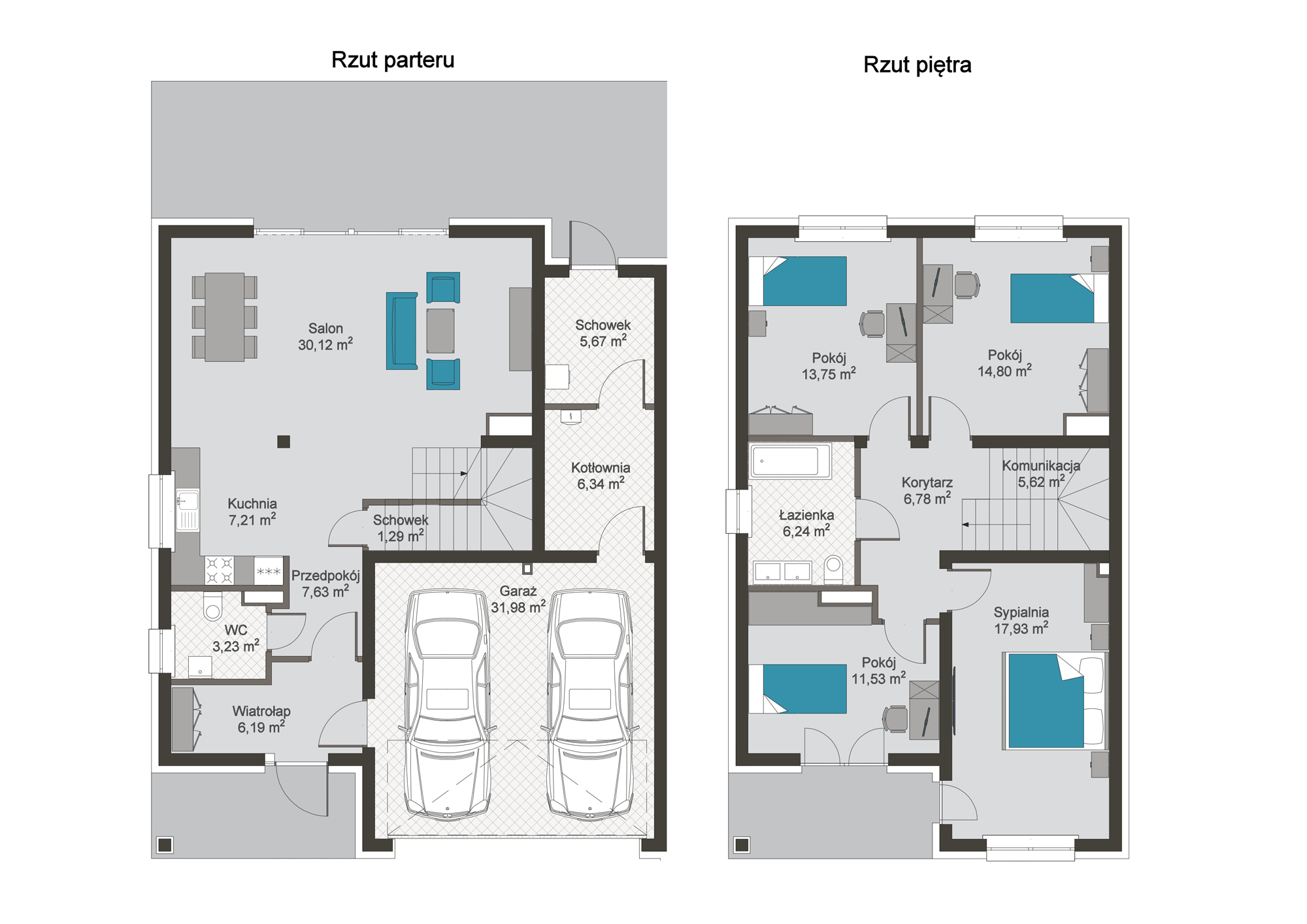 budynek jednorodzinny dwukondygnacyjny w zabudowie bliźniaczej (dwa segmenty)